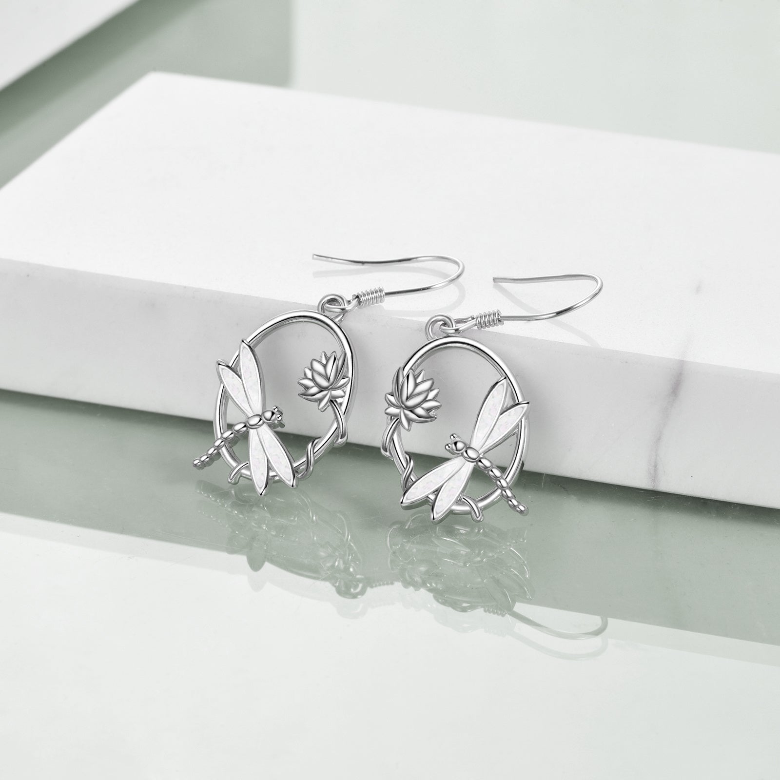 Sterling Silver Dragonfly Opal Dangle Drop Earring Jewelry