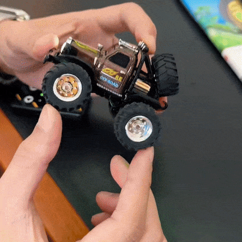 This compact RC truck is built to deliver big action in a small size. Whether it's racing through dirt or drifting across a living room, its shock-absorbing suspension, high-grip tires,and LED headlights make every ride exciting for kids and adults alike.